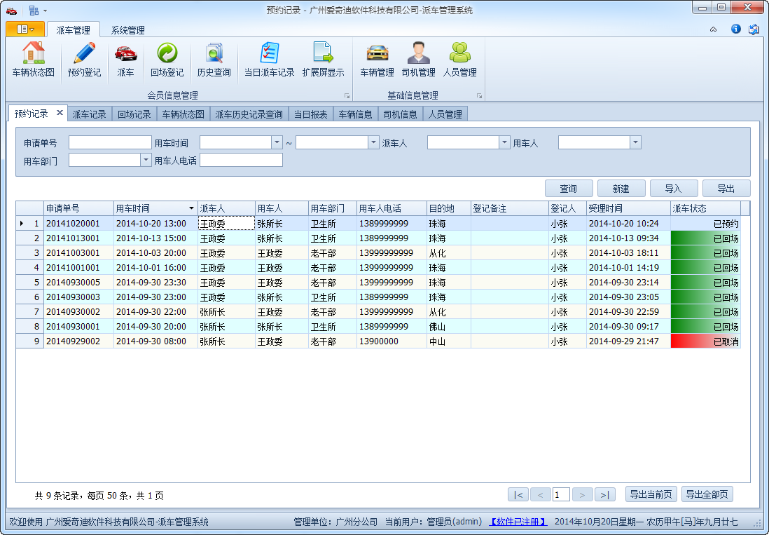 預約、派車、回場過程管理